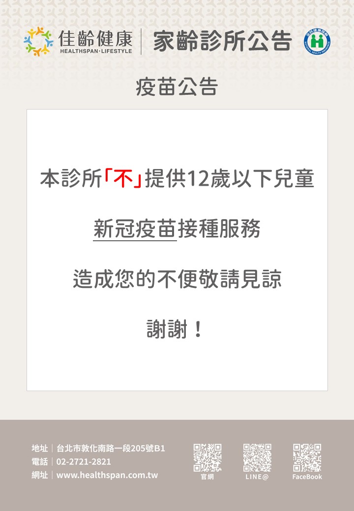【家齡診所】本診所不提供12歲以下兒童新冠疫苗接種服務