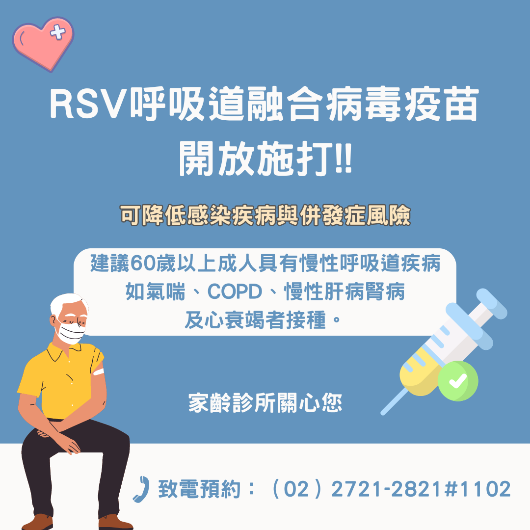 【家齡疫苗公告】RSV呼吸道融合病毒疫苗開放接種
