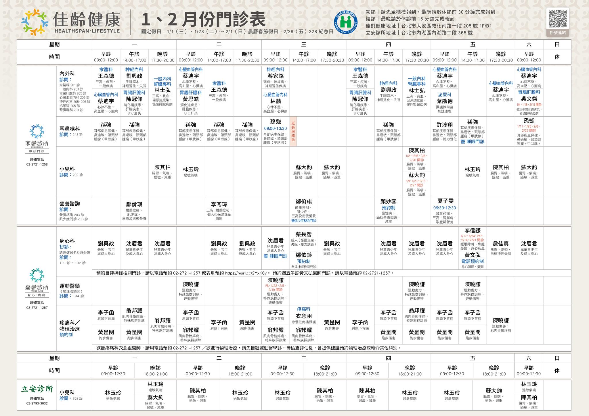 【1-2月門診資訊】