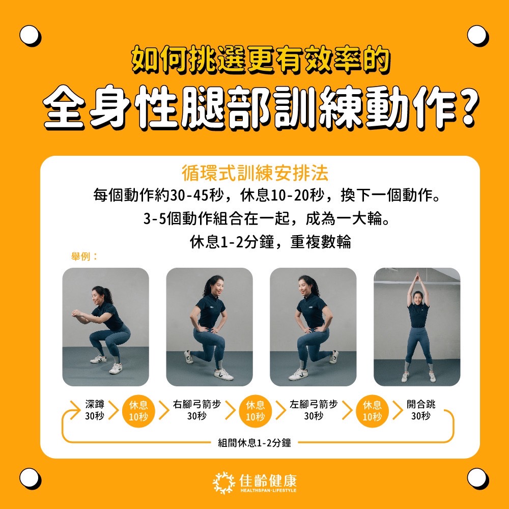 - 挑選 3~5 個動作,每個動作設定約 30~45 秒。