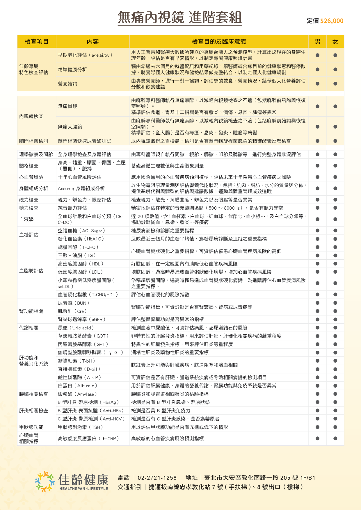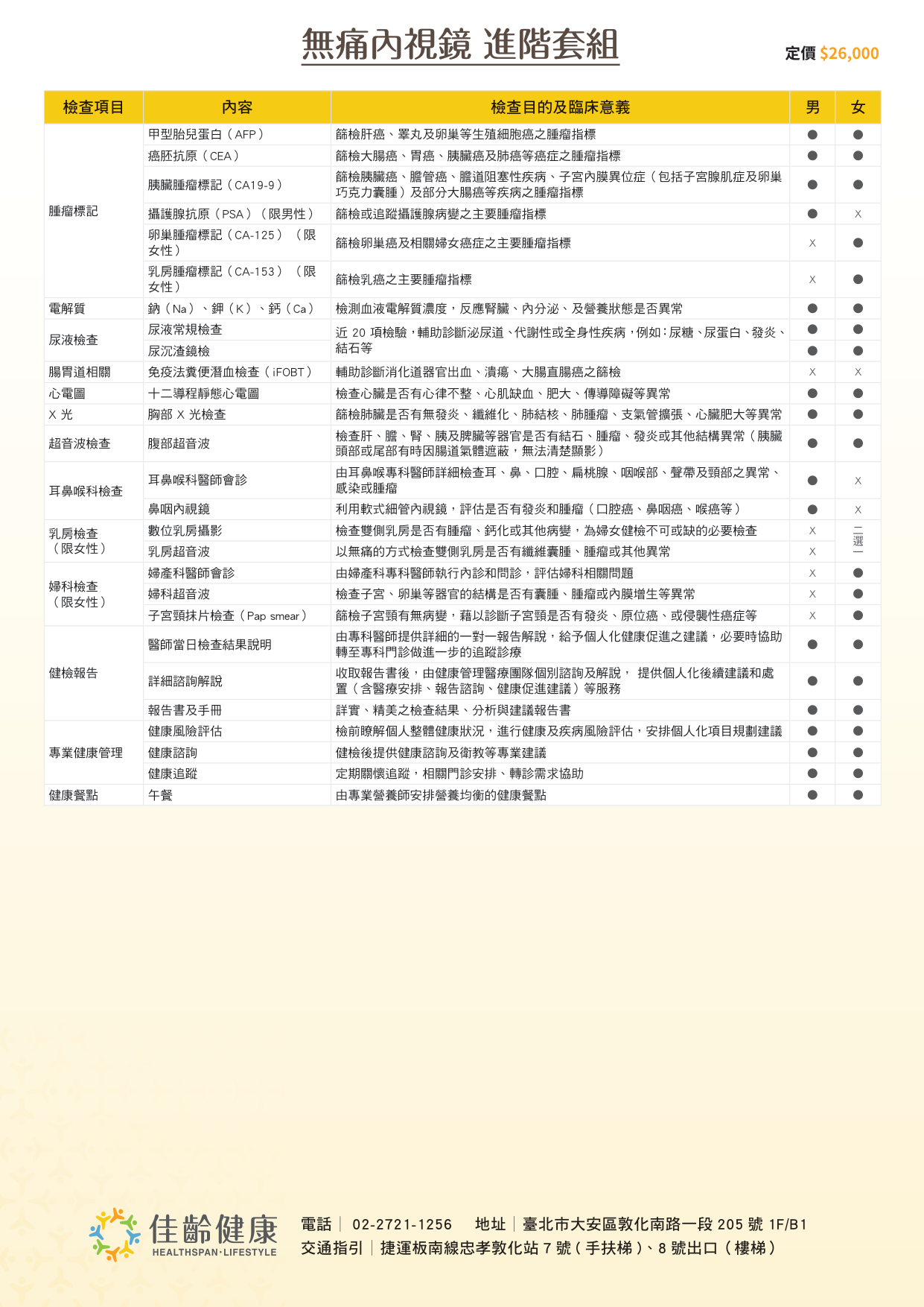 目前佳齡的健康檢查方案中,已包含無痛腸胃鏡檢查的有: