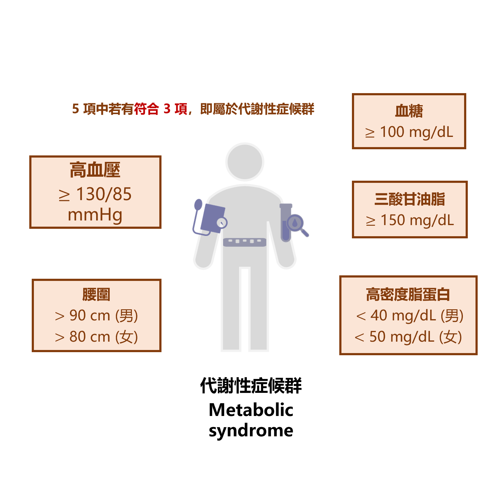 ▲ 代謝症候群診斷標準:5項中若有符合3項,即屬於代謝性症候群。(圖片提供:陳曉謙物理治療師)