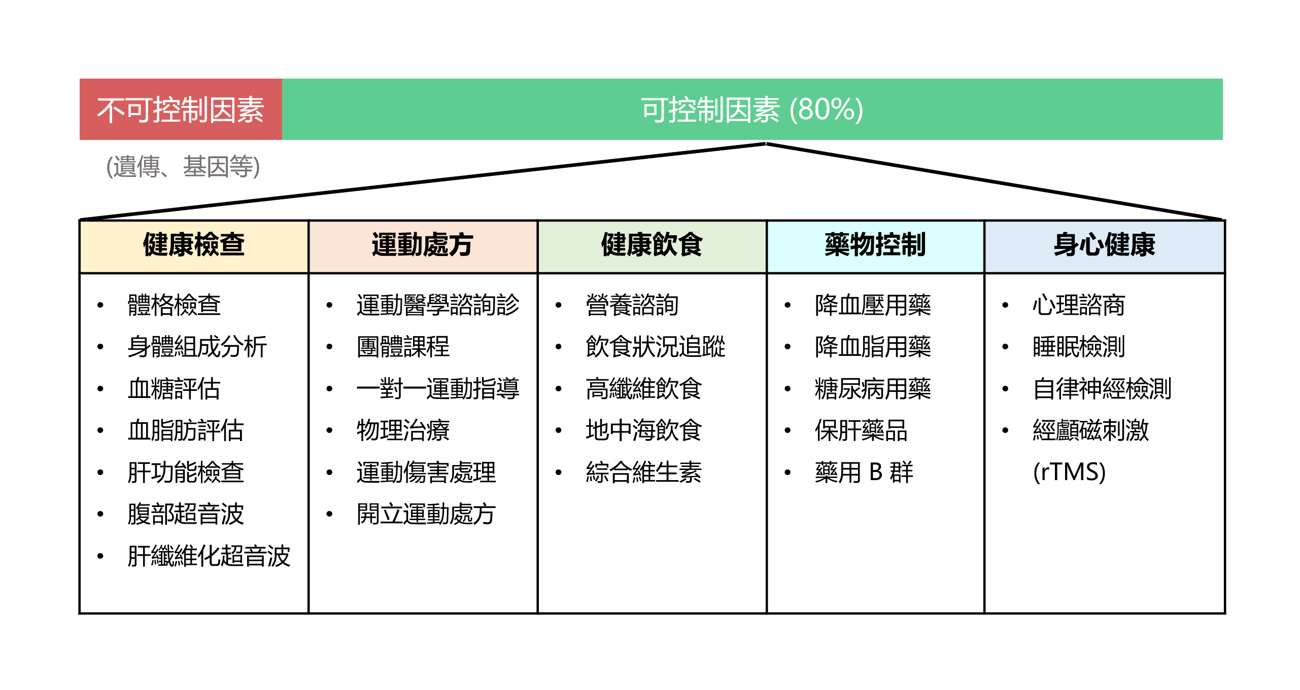▲ 面對脂肪肝,不可控因素占20%,可控因素占80%,民眾可以從調整生活型態等各方面著手改善。(圖片提供:陳曉謙物理治療師)