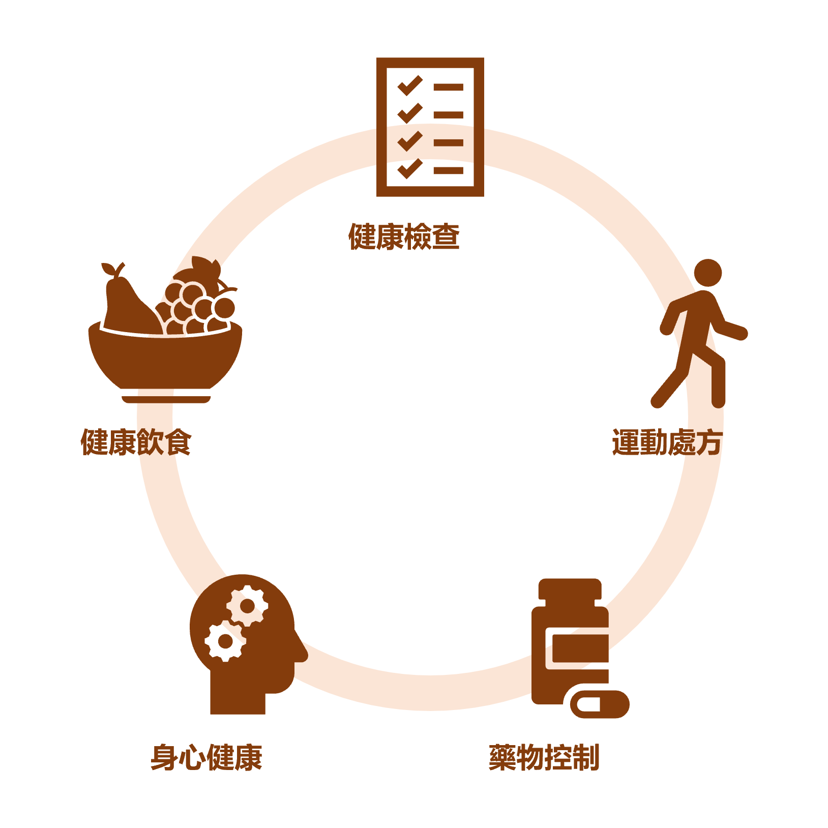 增加蔬菜、水果攝取,減少高油脂、高糖份、加工食品等