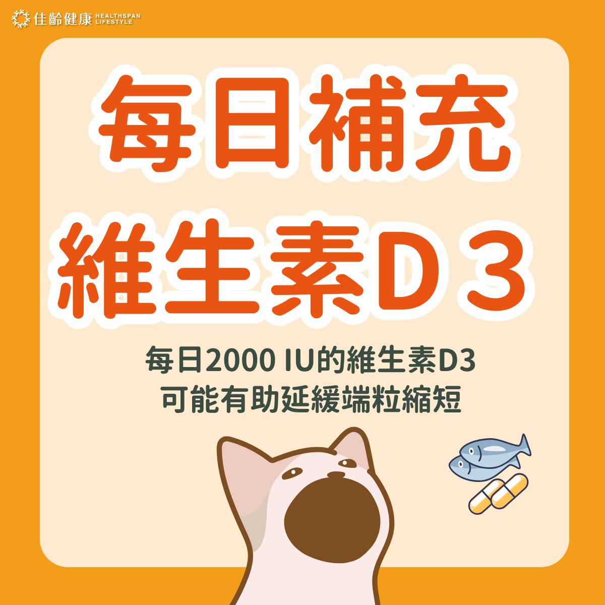 - 補充維生素D:每日2000 IU的維生素D3可能有助延緩端粒縮短,但應諮詢醫師,以確認是否適合個人狀況。