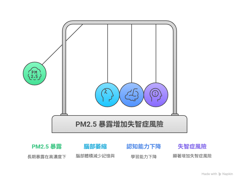 研究分析了美國超過 5650 萬名年長者的資料,發現長期暴露在高濃度 PM2.5 的人,出現失智症的風險明顯升高,其中以 DLB 的影響最為突出,甚至比單純不伴隨失智的巴金森氏症更嚴重。這顯示空氣污染可能對不同類型的神經退化疾病有不同的傷害力。