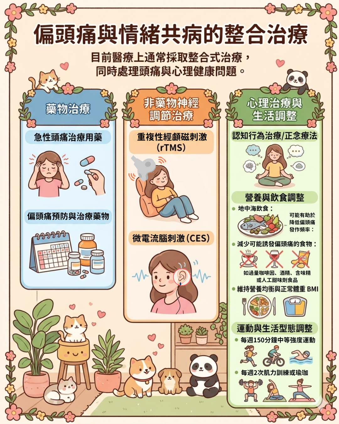 目前醫療上通常採取整合式治療,同時處理頭痛與心理健康問題。